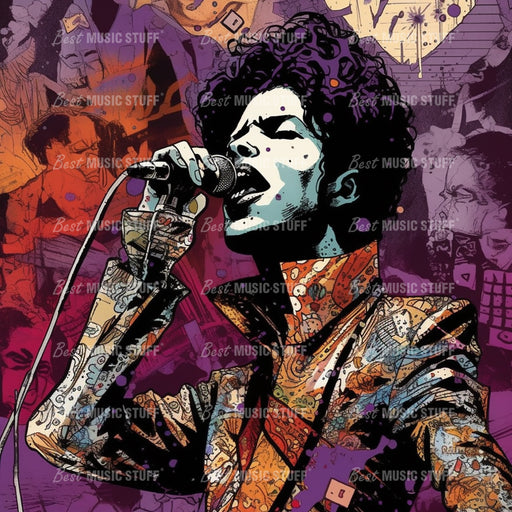 Welcome to the Best Music Stuff Art gallery! Get ready to experience the magic of music in a new way with our high-quality original fine art poster downloads. We've collaborated with a NJ based artist to bring you stunning artwork featuring some of the greatest music icons of all time. With a resolution of 72 DPI and an image download size starting at 85 inches tall and high, you'll be able to enjoy the same museum-quality resolution as a physical poster, but with the added convenience of being able to print it from home or at your local print shop.