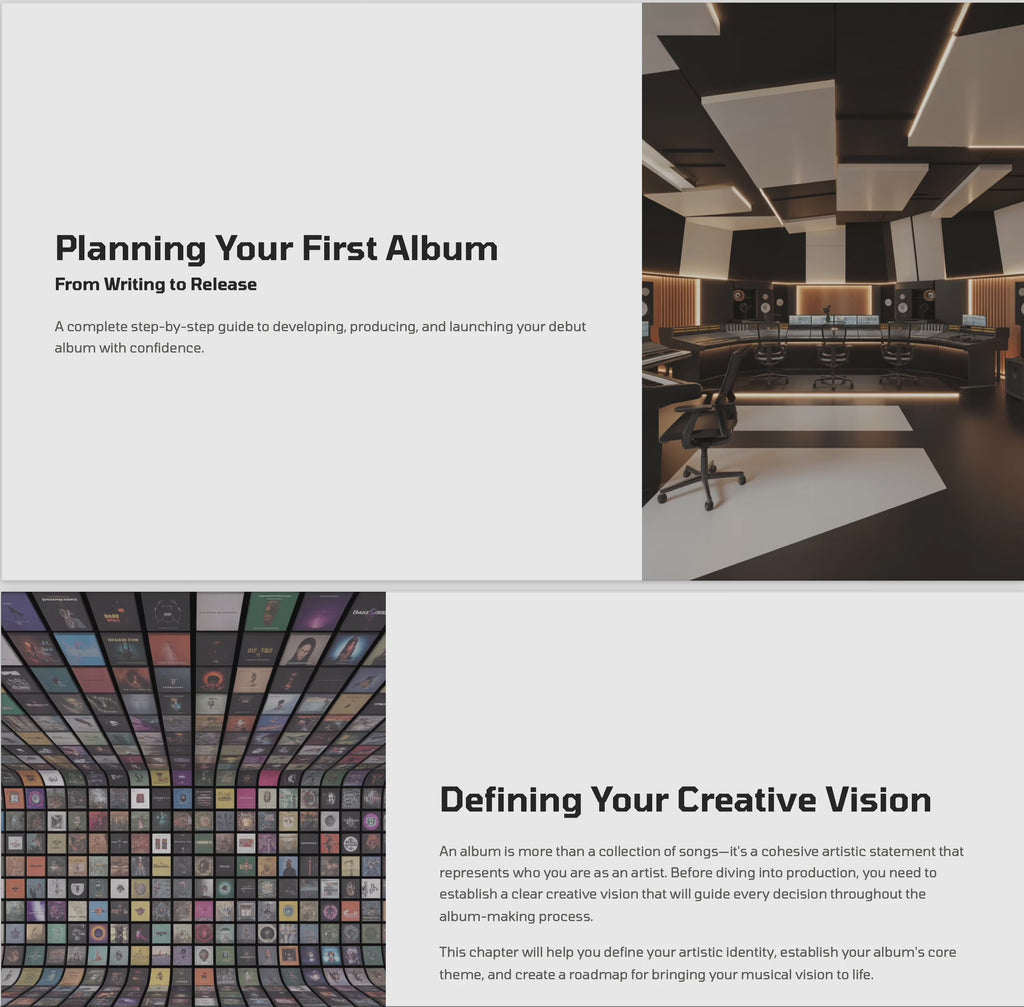 Even if this is your very first album project, the guide gives you clear direction, workflows, checklists, and goals to keep your project focused and professional.