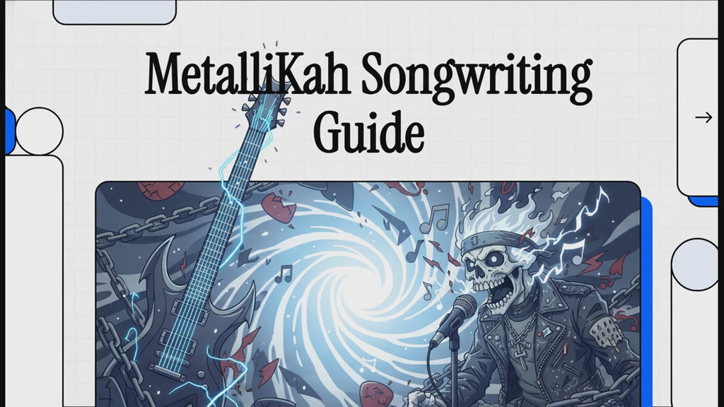 Unleash your inner metal mastermind with the MetalliKah Songwriting Guide, a 101-page ultimate playbook for crafting heavy, high-energy songs inspired by the raw power, precision, and storytelling grit of the fictional metal giants MetalliKah.